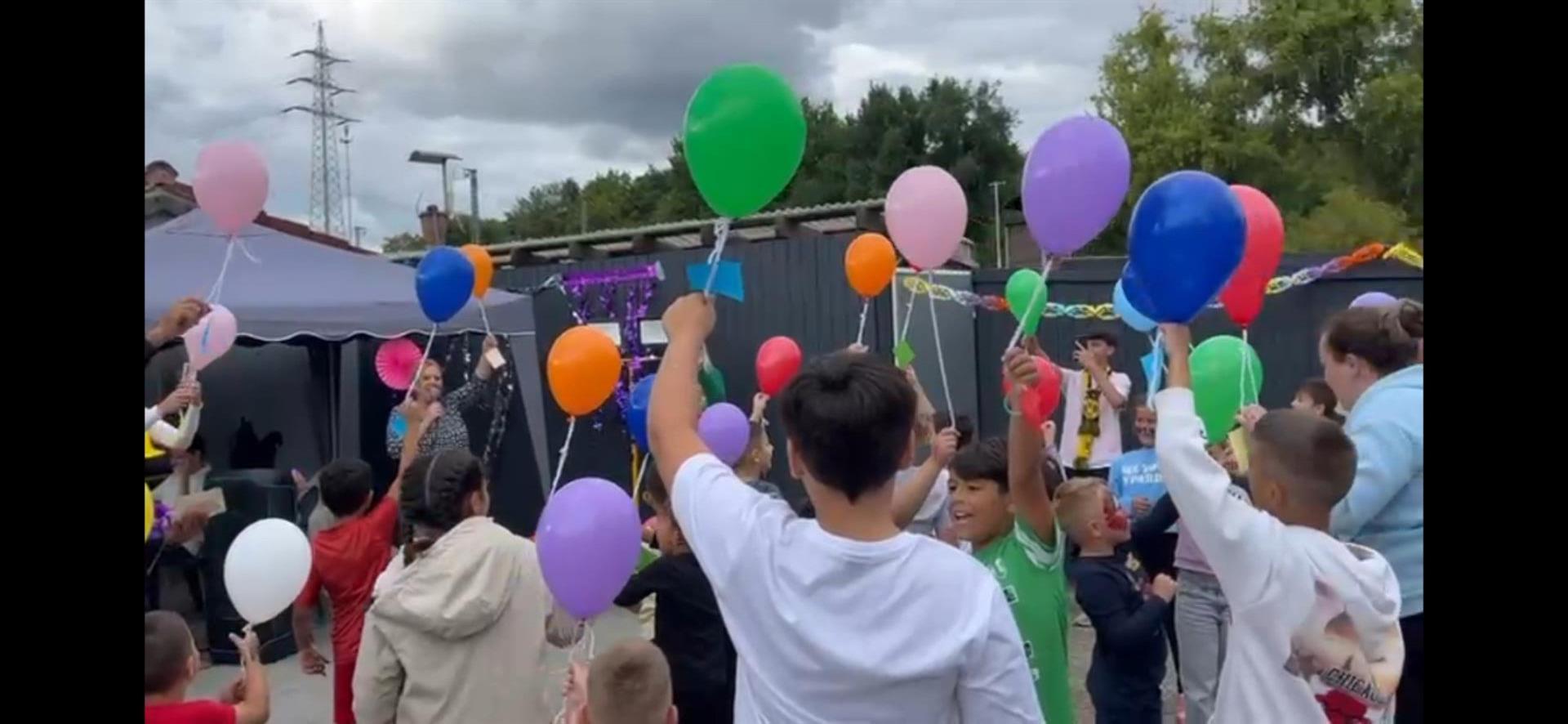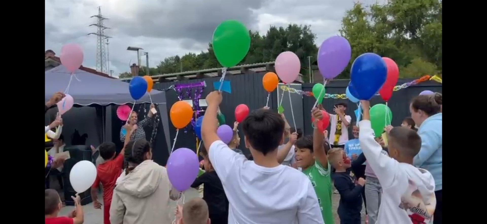 Ein besonderes Highlight war die Luftballon-Aktion: Über 60 farbenfrohe Ballons, versehen mit den Wünschen der Kinder, stiegen in den Himmel und verzauberten mit ihrem Anblick Jung und Alt.