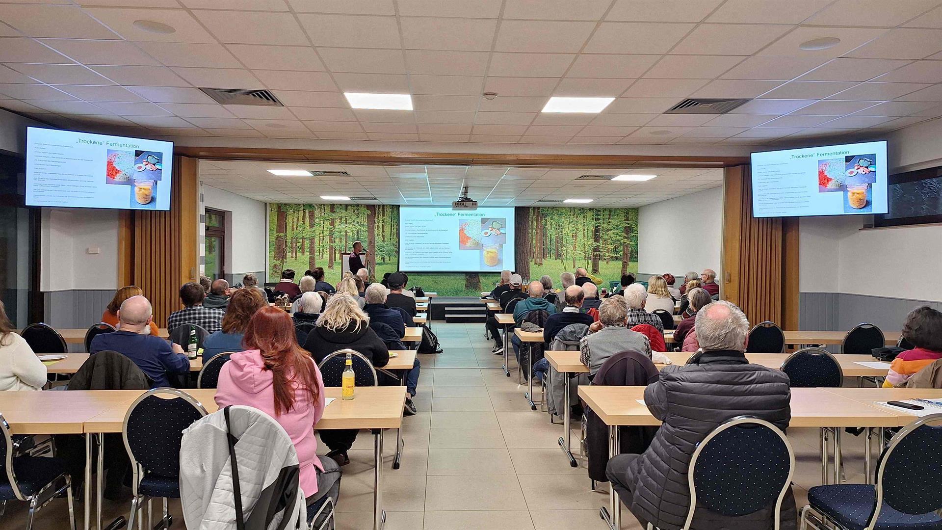 In seinem Vortrag beleuchtete er die Beweggründe für die Fermentierung von Obst und Gemüse und erläuterte anschaulich die einzelnen Prozessschritte. Im Anschluss hatten die Teilnehmenden Gelegenheit, verschiedene fermentierte Produkte zu verkosten und sich über deren Herstellung auszutauschen.