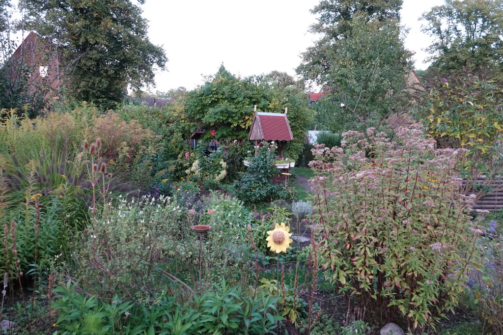 Da könnte es z.B. helfen, kleine Blumenwiesen einzusäen und Pflanzen wie Wegwarte, Fenchel und Karde, verschiedene Obstbäume, die zu unterschiedlichen Zeiten blühen und Kräuterspiralen mit Kräutern, die über das ganze Jahr verteilt blühen, anzubauen. Auch wenn‘s dem Gärtner in den Fingern juckt, sollte man viele Pflanzen im Herbst stehen lassen und diese erst im Frühjahr abräumen, da in ihnen viele Insekten überwintern.