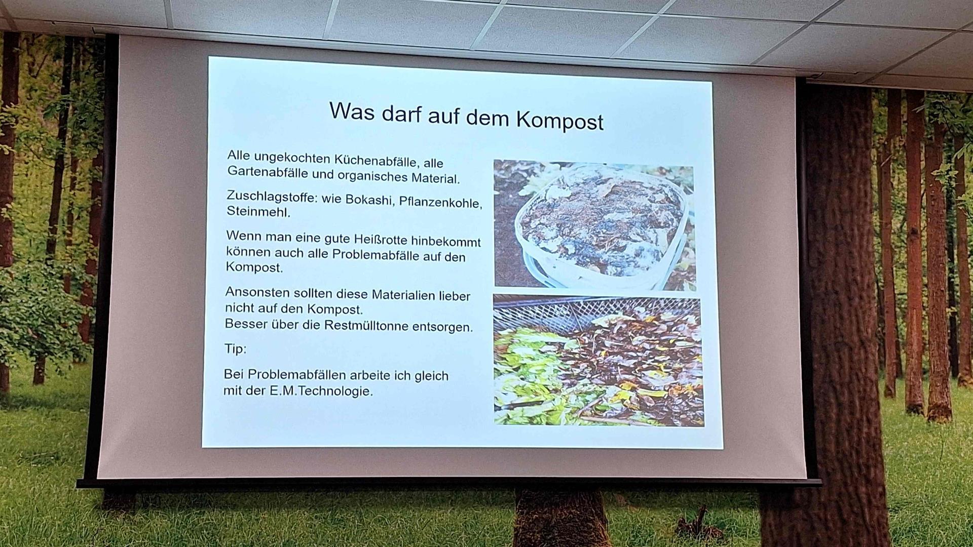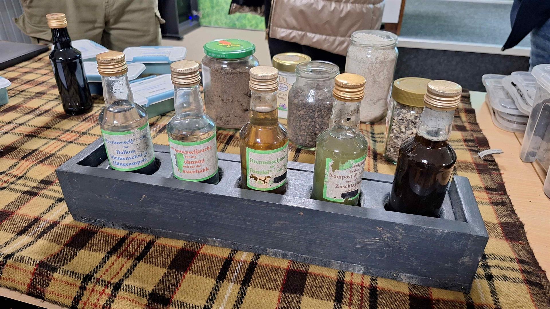 Besonders anschaulich wurde der Vortrag durch die mitgebrachten Jauchen (z. B. Brennnesseljauche – ohne Gestank) und verschiedene Erden, die nach der Präsentation begutachtet werden konnten. Die Teilnehmenden erhielten dadurch einen praxisnahen Eindruck und konnten die vorgestellten Methoden direkt nachvollziehen.